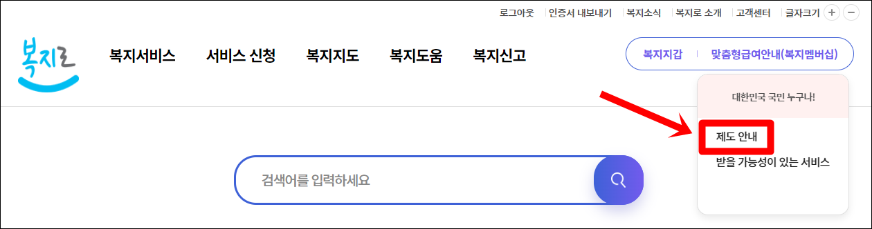 1. 우측상단 복지 멤버십 [ 제도안내 ]를 클릭합니다.