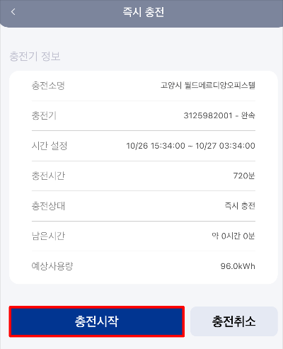 5. 최대 충전 시간으로 설정하고 충전하기 클릭합니다.