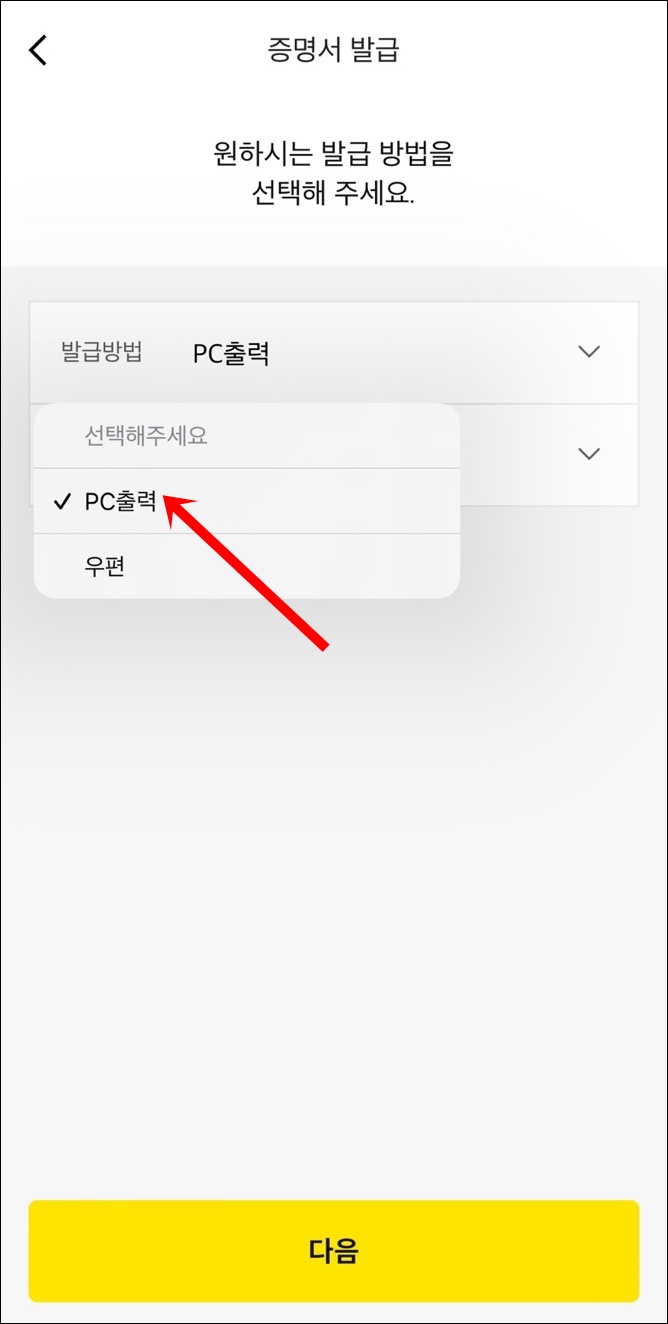 ( PC로 카카오뱅크 방문 후 고객센터 - 나의 증명서 발급 내역 확인)