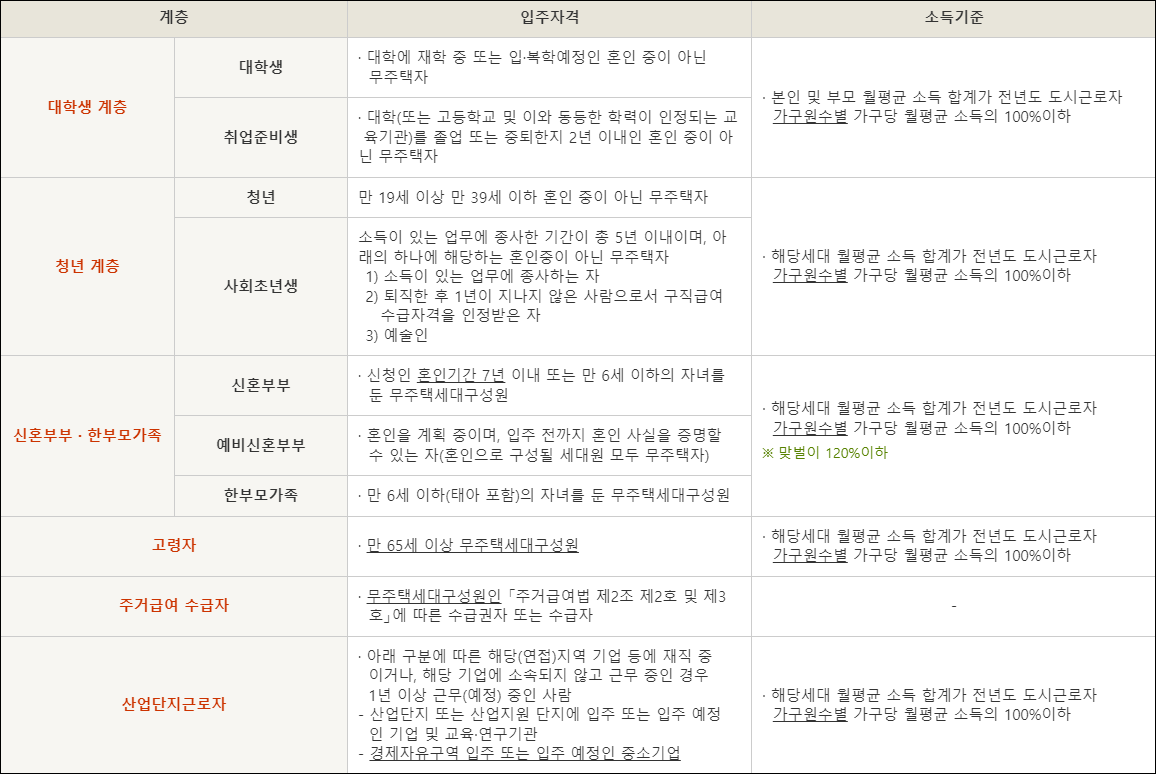 2. 청년 계층 입주자격